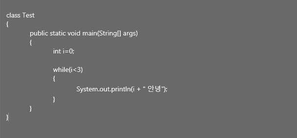 (1) 위에서는 증감이 없었기 때문에 i의 값이 변하지 않았다. while반복문의 경우 조건만 가지기 때문에 중괄호 { } 안에 증감에 대한 식을 따로 넣어주어야 한다.