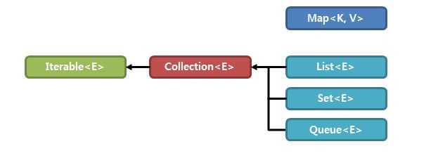 Collection<E> Map<K,V>
