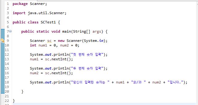 (5) num1 = sc.nextInt(); : 여기서 위에 sc 변수부분의 이름과 동일하게 주어야 한다.